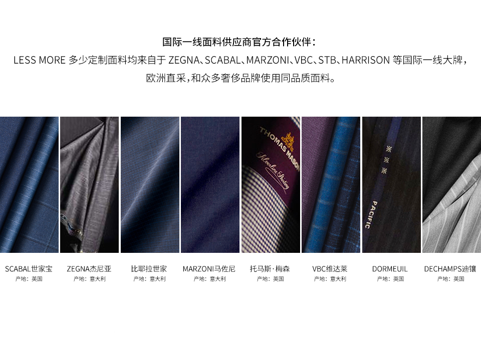 LESS MORE 多少定制是能夠提供男士全品類(lèi)定制產(chǎn)品的生活方式品牌,對(duì)于中國(guó)商務(wù)男士來(lái)說(shuō),定制是對(duì)西裝最認(rèn)真的態(tài)度。